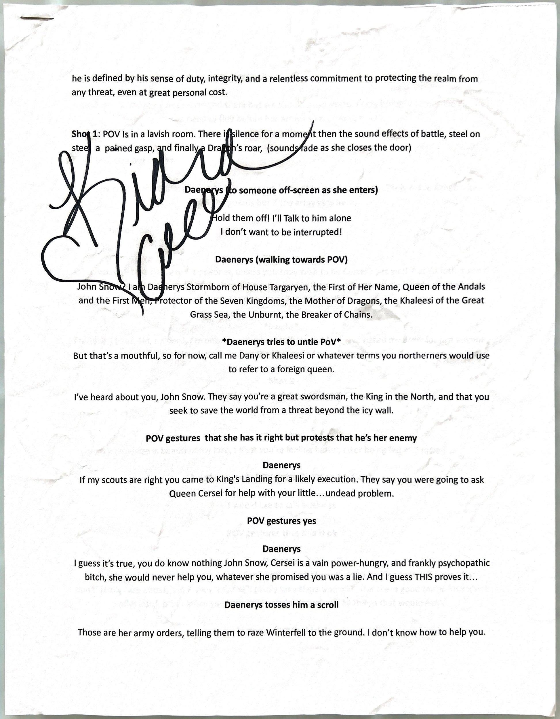 “Game of Thrones: Daenerys Targaryen (A Parody)” Signed Script